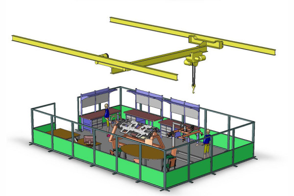 Implantation des postes en fonction du bâtiment, de la chronologie des fonctions, des accessibilités, de l’ergonomie, des contraintes de sécurité, des alimentations et évacuations des produits.