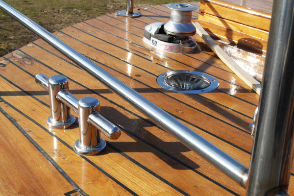 Dans le cadre d'un besoin sur un chantier naval, MECADESS a créé des équipements spécifiques répondant à des besoins fonctionnels et esthétiques. Ci-contre, l'exemple de restauration d'un bateau en bois.